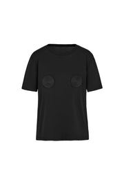 The Ladder Detail Tee is a bold reimagining of a wardrobe classic. Crafted from premium cotton, this black T-shirt features two raised leather ladder appliqués on the chest, bringing a modern, edgy touch to a timeless silhouette.
