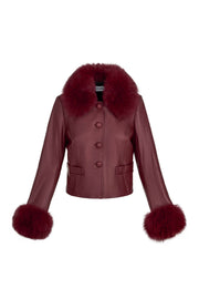 Make a powerful style statement with this elegant cropped leather jacket, featuring a rich burgundy tone that exudes sophistication. The design is elevated with plush matching fur on the collar and cuffs, adding texture and a touch of drama. With its tailored fit and classic front button closure, this jacket is the perfect balance of timeless elegance and modern edge.